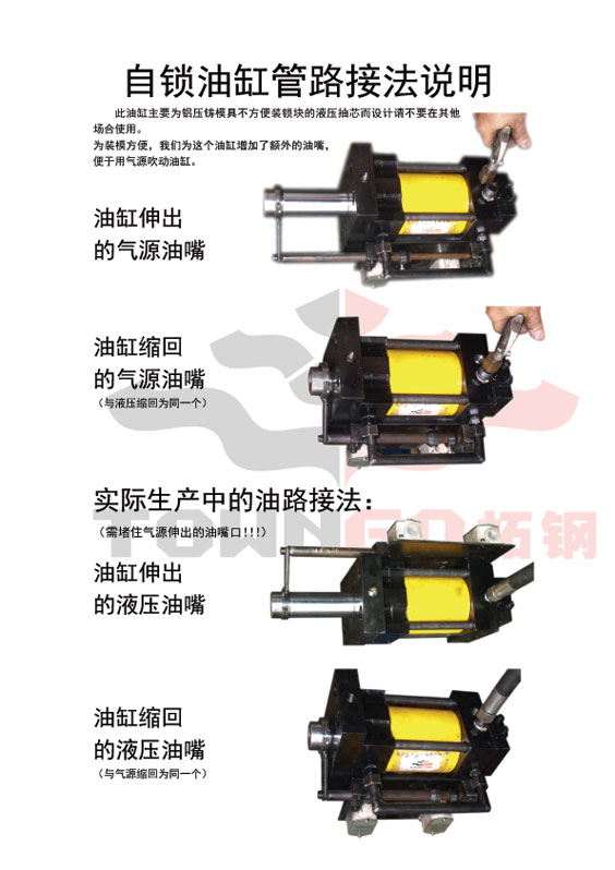 自锁油缸的规格参阅模具油缸,即在普通模具油缸基础上增加自锁装置,并提高油缸的耐压强度。典型案例:GY6右盖。